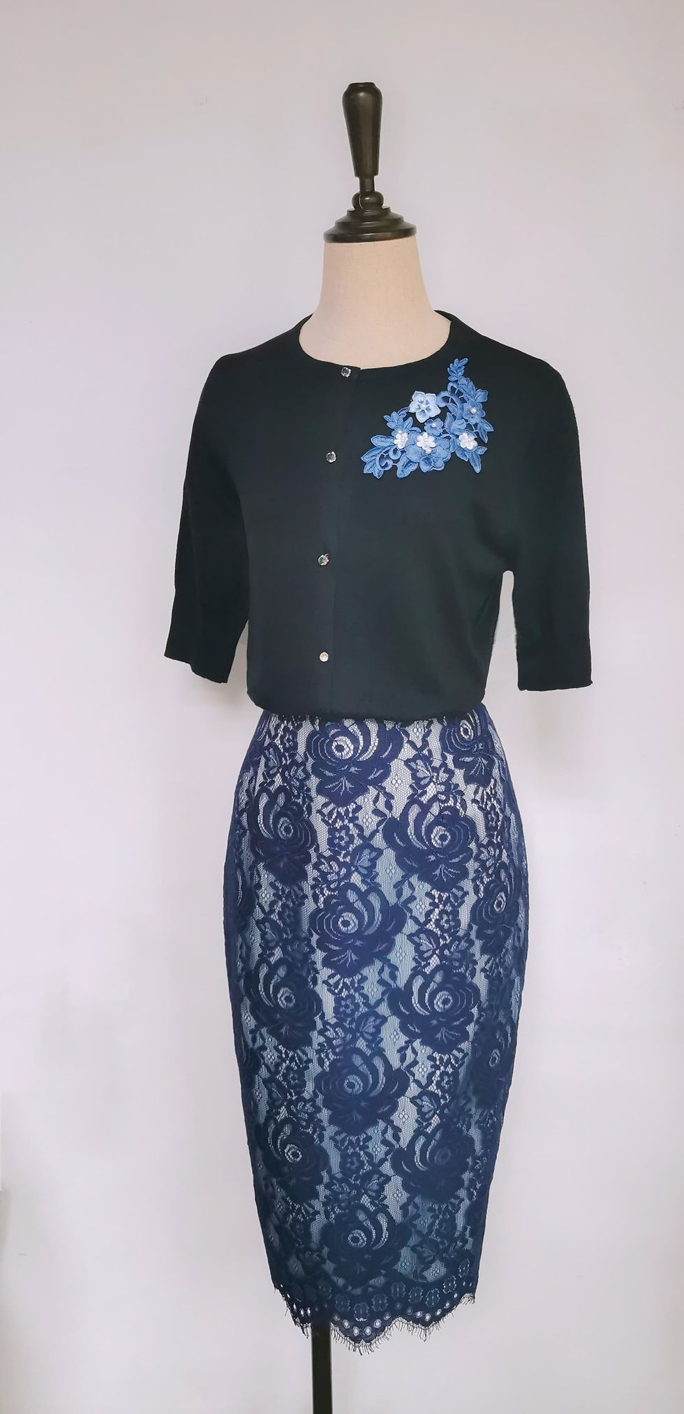 Mandarin Collar Lace Top (Black Lace over Emerald Green)